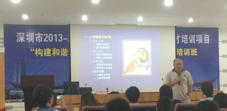 馬欣川-教授正在講解--員工心理健康的重要性。